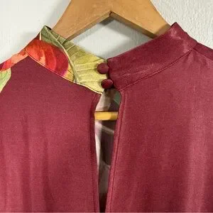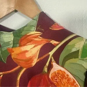 Color: Wine / Burgundy with multicolor fig & botanical print