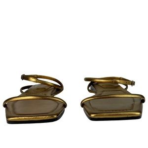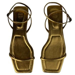 Elegant gold sandals with ankle strap. Sleek and minimalist design. Perfect for any occasion. Never worn, perfect condition.