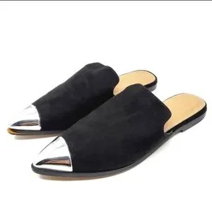 ASOS Suede Mona Black Mule Pointed Cap Toes