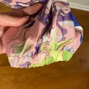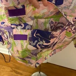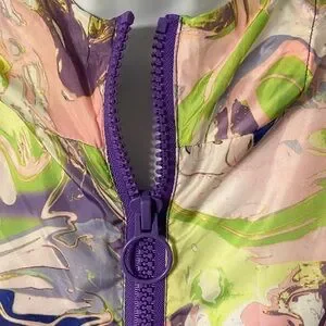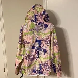 Like new! ASOS hooded pullover windbreaker jacket in pink multi colored print, size 10 US. Bungee waist adjustment. Pit to pit 42” length 28”. Eye catching colors!