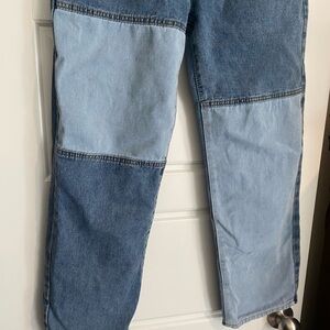 SHEIN Blue Patchwork Barrel Boyfriend Jeans
