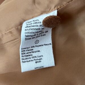 Flattering unique wool coat cinched at waist with balloon sleeves. Pleats on the back hem. Like new condition. Brown camel color with pearl white and rose gold button closure.