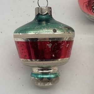 4- Vintage Hand blown Mercury glass ornaments UFO Double Indent Teardrop