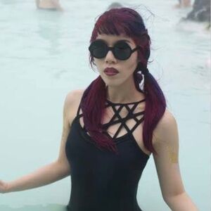 Goth pentagram straps black swimsuit one piece gothic swimwear size s like new
