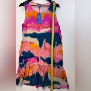 Caribbean Joe NWT tie dye ruffle hem tank dress size Large Beach Resortwear