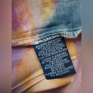 The Caribbean Joe NWT Tie Dye Ruffle Hem Tank Dress in size Large is a stylish and versatile piece perfect for beach, resort, or vacation wear. Made of lightweight rayon fabric in vibrant pink, blue, orange, and peach colors, this knee-length dress features a ruffle hem and a round neckline with a pullover closure for easy wear. Ideal for casual events, parties, or travel, this dress is machine washable and has convenient pockets for added functionality. Perfect for summer, fall, or spring, this sundress from Caribbean Joe Island Supply Co. captures the tropical theme of relaxation and fun in the sun.