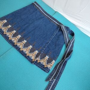 Free People Denim Wrap Tie Mini Skirt Aztec Boho Embroidery Hendrix Skirt - Blue Medium Wash - Size 10