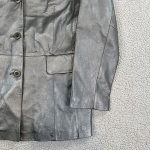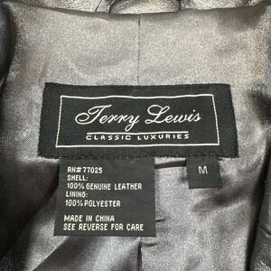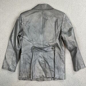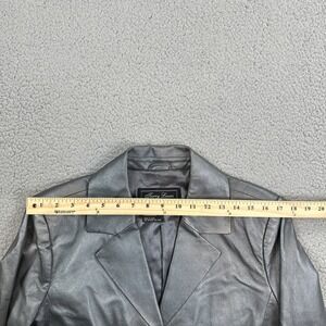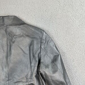 Terry Lewis Leather Blazer Jacket Women Medium Silver 3 Button Lined Luxury Coat