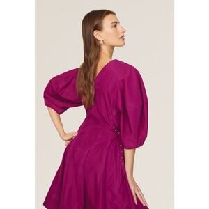 3.1 Phillip Lim Puff Sleeve Godet Magenta V-Neck A-Line Knee Length Dress 12