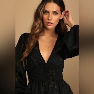 LULUS | NWT PATIO DATE BLACK FLORAL JACQUARD BUTTON-UP LONG SLEEVE TOP LARGE