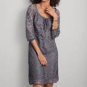 Garnet Hill Dress womens size 4 Boheme Easy Lace shift front Tie Romance Gray