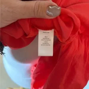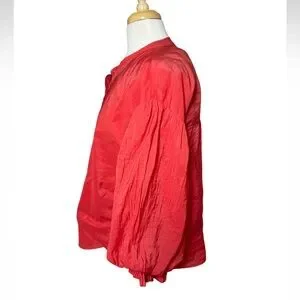 Chic and bold red blouse with bubble sleeves. This is a very gently used and in excellent condition blouse. Features button-up front and relaxed fit. Ideal for versatile styling, casual, or work. This is a true classic. This is very gently used and in excellent condition. This shirt is 75% rayon, and 25% polyester. The shirt can be worn out, untucked or you can tuck in. It is not a very long shirt so it would be just a small tux into your pants or belt. All of my items are well cared for and come from my clean and smoke free home.