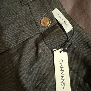 Elegant charcoal trousers featuring a gold button. Ideal for versatile styling.