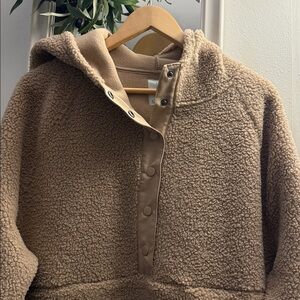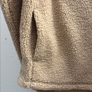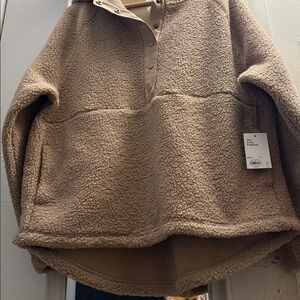 High Low Warm and stylish tan sherpa pullover hoodie. Features a button-up front and hood for extra comfort.Aprox:25in armpit to armpit. 28in long