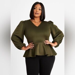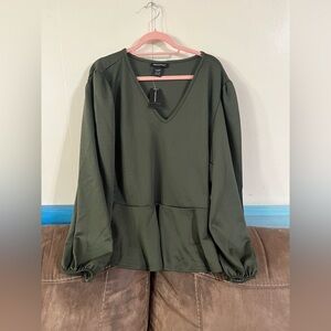 NWT Ashley Stewart Green Peplum Top Size 26/28 (4X)