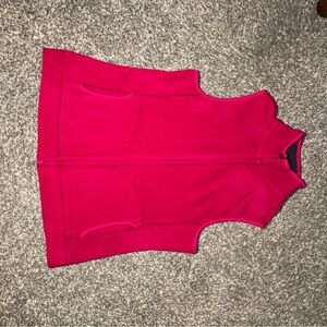 Hot pink fleece vest with zip closure. Features side pockets.