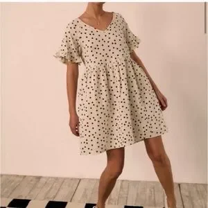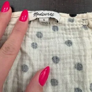 Madewell babydoll polka dot cream cotton gauze mini tunic dress size small with pockets. In good condition.