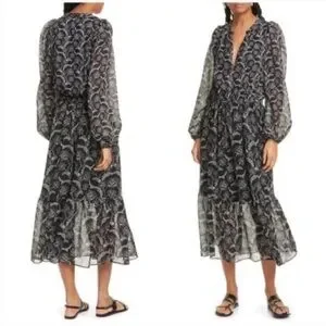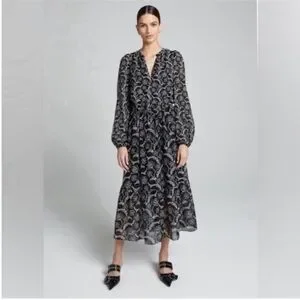 ALC Kate Floral Long Sleeve Silk Blend Midi Dress