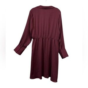 NEW, Addition Elle, Satin Wrap Dress with Tailored Collar, Plus Size 16W, Plum
