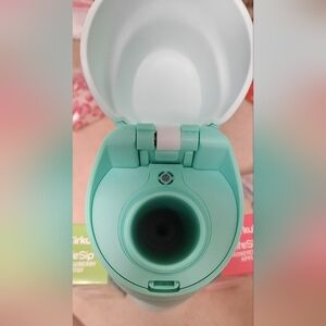 The bottle has a push-button, locking flip lid to protect the cartridge and prevent spills.