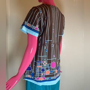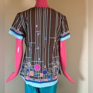 Koi Kathy Peterson Scrub Top Medium Geometric Print Empire Waist