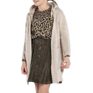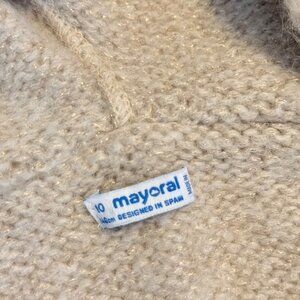 Size 10 Girls Mayoral Cream Long Wool Blend Hooded Cardigan Sweater Coat