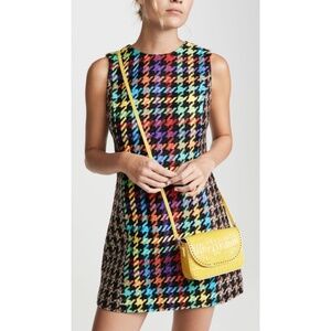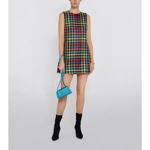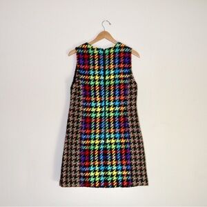Alice + Olivia Colin Colorful Houndstooth Crewneck Sleeveless Short Mini Dress