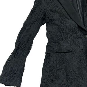 Keywords: Rag & Bone, black blazer, women's blazer, lace detailing, notch lapel, long sleeve blazer, single-breasted blazer.