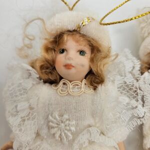 Vintage Angel Doll Ornaments Pair Lace Dresses Porcelain Faces Christmas