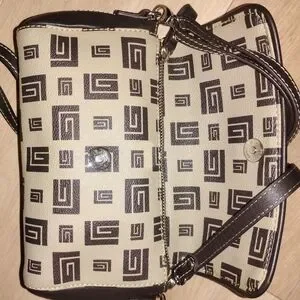 Vintage Guy Laroche Brown/ Tan Leather Logo Crossbody Bag