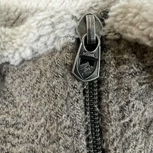 Color: Heathered brown exterior with light contrast stitching and off-white sherpa-style fleece lining inside the collar.