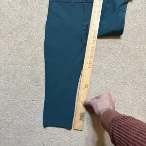 Pattern and style: Solid-color Charleston green fabric in a tailored chino silhouette suitable for both dressy and casual outfits.