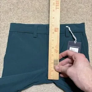 Factory brand and retail hangtags attached; pants appear unused with crisp woven fabric and rich Charleston green color. Fabric, seams, zipper, buttons, and printed logos are clean and intact with no stains, holes, or fraying, and interior labels are secure and legible; sold without original outer packaging and may show minor wrinkling from storage.