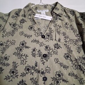New York Clothing Company Floral Olive Green Print Button-Up Top Size M NWT