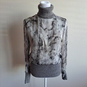 Tricot Chic Grey Silver Turtleneck Silk Wool Sweater Top Size US 8 / S - M