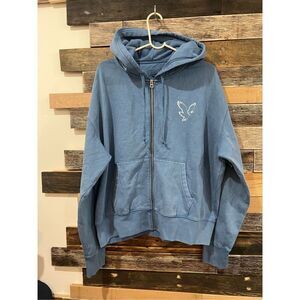American Eagle NWOT Blue relaxed Fit Printed Hooded Sweatshirt zip Sz M