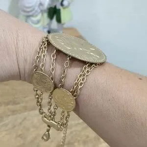 Elegant gold coins Greek theme multilayer chains bracelet, lightly used, sold as is, please refer to all images as they are essential in the description of the item thank you for checking out my closet all sales are final and there are absolutely NO returns, ask questions prior to purchasing when in doubt, I can't cancel orders once they have been submitted you will need to contact Poshmark. Perfect for adding a touch of sophistication to any outfit.