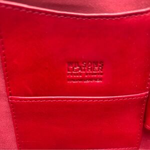 Classy Chic Red Leather Bag by Wilsons Leather. Sleek design with sturdy handles. Perfect for Work, Business Trips, or any Hobby. This bag has several pockets, pen/marker holders, attached small mirror and plenty of space to hold a small computer, I pad, books and/or papers with Very Nice Zipper Closure. Only been carried a few times in Great Shape!