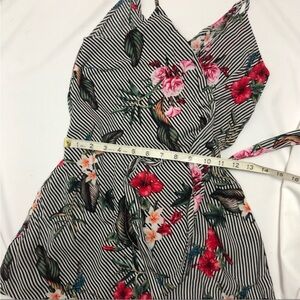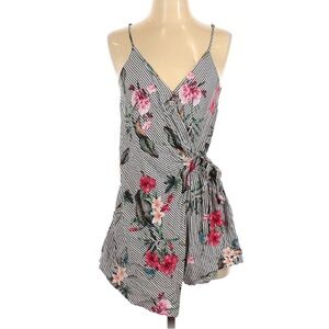 Dress forum wrap front shorts romper floral & stripe girly vacation boho resort
