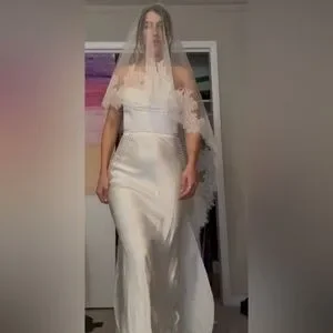 This gorgeous 2 tiers cathedral lace veil is so stunning! It is handmade with soft bridal illusion tulle and a gorgeous French Chantilly lace. It's floating and there is no obvious signs of a comb or bunching on the top of the veil. A metal comb is attached to it.