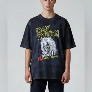 Iron Maiden “Killer Tour ‘81” Black Oil Wash Tie-Dye Oversized Cotton T-shirt M