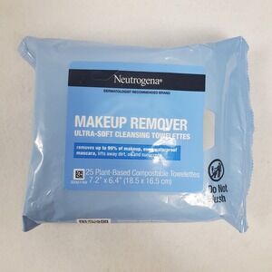 Neutrogena Makeup Remover Ultra-Soft Cleansing Towelettes effectively lift away up to 99% of makeup, including waterproof mascara, while removing dirt, oil, sunscreen, and pollution. These plant-based compostable cloths feature a triple emollient blend to dissolve impurities and condition the skin without leaving a heavy residue. Dermatologist, ophthalmologist, and allergy tested, they are gentle enough for the delicate eye area and formulated without parabens, alcohol, sulfates, phthalates, soaps, or dyes.
