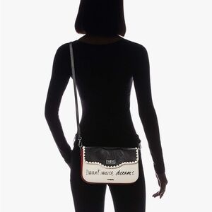 Make a statement with this fun and fashionable Desigual crossbody bag! Featuring a bold and inspiring handwritten-style slogan “I Want More Dreams”, this bag combines practicality with a playful twist. The contrasting black and cream panels are set off with a pop of red trim that adds personality and flair — perfect for everyday wear or travel. It has a sleek silhouette that stays structured, an adjustable shoulder strap for comfort, and a secure clasp closure. Inside, there’s enough room for your essentials — phone, wallet, keys, makeup, and more — making it ideal for errands, evenings out, or casual occasions. This bag brings together style, positivity, and versatility — just what your closet needs! ⸻ 🧵 Features • Eye-catching slogan detail • Adjustable shoulder strap • Compact but roomy interior • Lightweight yet durable • Perfect for city days, weekends, or evening looks • Great for gifting too!