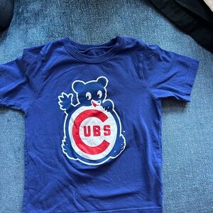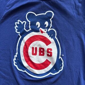 Fun Cubs bear graphic on a vibrant blue tee. Perfect for young fans.