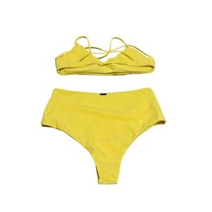 FIIRE Yellow High Waisted Bikini Set Strappy Back Two Piece Swimsuit Small NEW