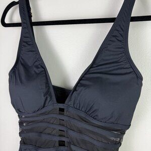 Blanca Black Mesh Inset One Piece Swimsuit 10 Sexy V Neck Monokini Resort Wear