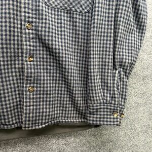 Cabela's Shirt Jacket Men's L Navy Gray Gingham Long Sleeve Fleece Lined Flannel