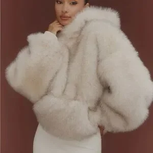 Viral hoodie no longer available, get it while you still can. Luxurious faux fur hoodie in a soft cream color. Perfect for staying warm and stylish.
