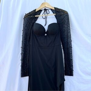 OH POLLY | SAN MARINO BEADED EMBELLISHED SIDE SPLIT MAXI DRESS IN BLACK SIZE 6