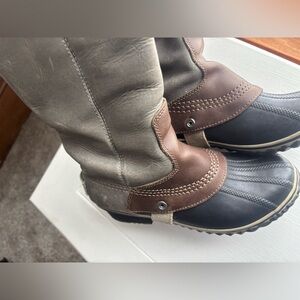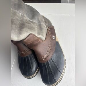 Sorel Fall/Winter Leather Waterproof Riding Boots. Ideal for rain and snow or just kicking around. Durable, Stylish, Rugged, Distressed Good Looking Boot! Very hard to find without flaws. These boots have NO flaws. A lot of Good Wear left in these!